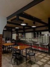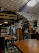 Просторный зал кафе-бара оформлен в европейском стиле. Помещение вмещает до 70 гостей, а для более приватной атмосферы вам предложат вип-зону, где удобно разместятся до 10 человек. Посетители могут расположиться за уютными деревянными столиками по центру зала или на высоких стульях за барным столом возле окна.